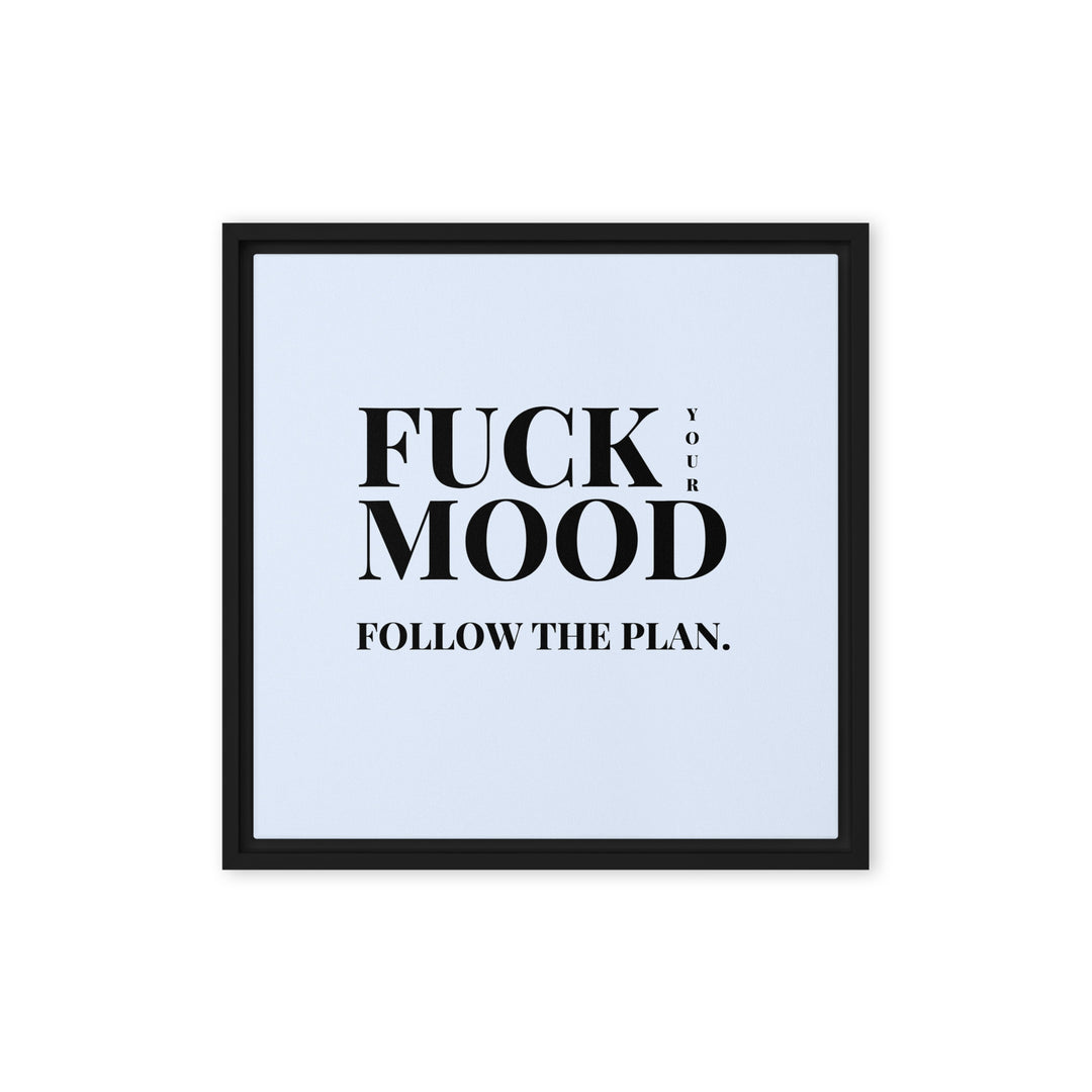 Bold Motivational Poster – 'Fuck Your Mood, Follow the Plan' Framed Wall Art (16″×16″)